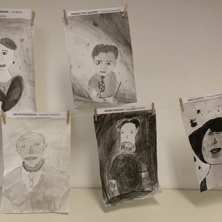 Inspirirani njihovim pričama, učenici su u likovnoj tehnici laviranog tuša izradili portrete odabranih velikana. Ova tehnika, koja se temelji na nijansiranju tušem i vodom, omogućila je izražavanje dubine i karaktera kroz jednostavnost crno-bijele palete.