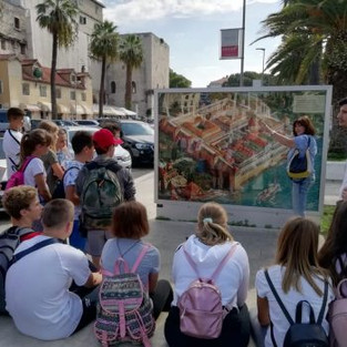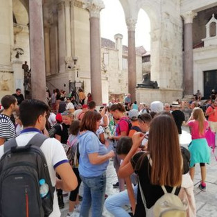 Treći dan putovanja učenici i učitelji posjetili su Split. Uz vodstvo gospođe Suzane, lokalnog vodiča, učenici su čuli mnoge povijesne činjenice i zanimljivosti o caru Dioklecijanu i njegovoj palači od koje se kasnije širio grad, današnji Split. Nakon šetnje Dioklecijanovim podrumima, Peristilom i najstarijim gradskim ulicama, ostalo je i slobodnog vremena za učeničku klapsku pjesmu i šetnju gradom.